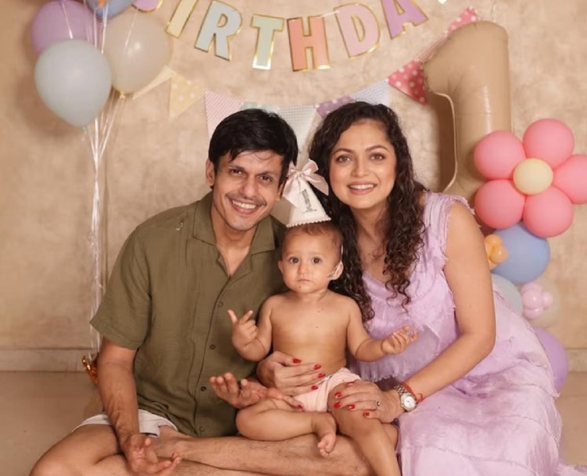 2026 is off to the cutest start for actor Drashti Dhami! Leela Khemka’s face has now been made public on social media by her and her husband, Neeraj Khemka. Last year, Drashti posted a number of photos from her infant daughter’s first birthday celebrations on Instagram. In October 2024, the couple welcomed their first child. Leela was grinning and standing next to a little arrangement that held her birthday cake in the first photo. “Leela” was scrawled on it. In a lavender dress, she was adorable. In the second image, Drashti and Neeraj were seen holding Leela while the leftover cake pieces were placed in front of them. Drashti and Leela were shown having a happy moment in the final photo.